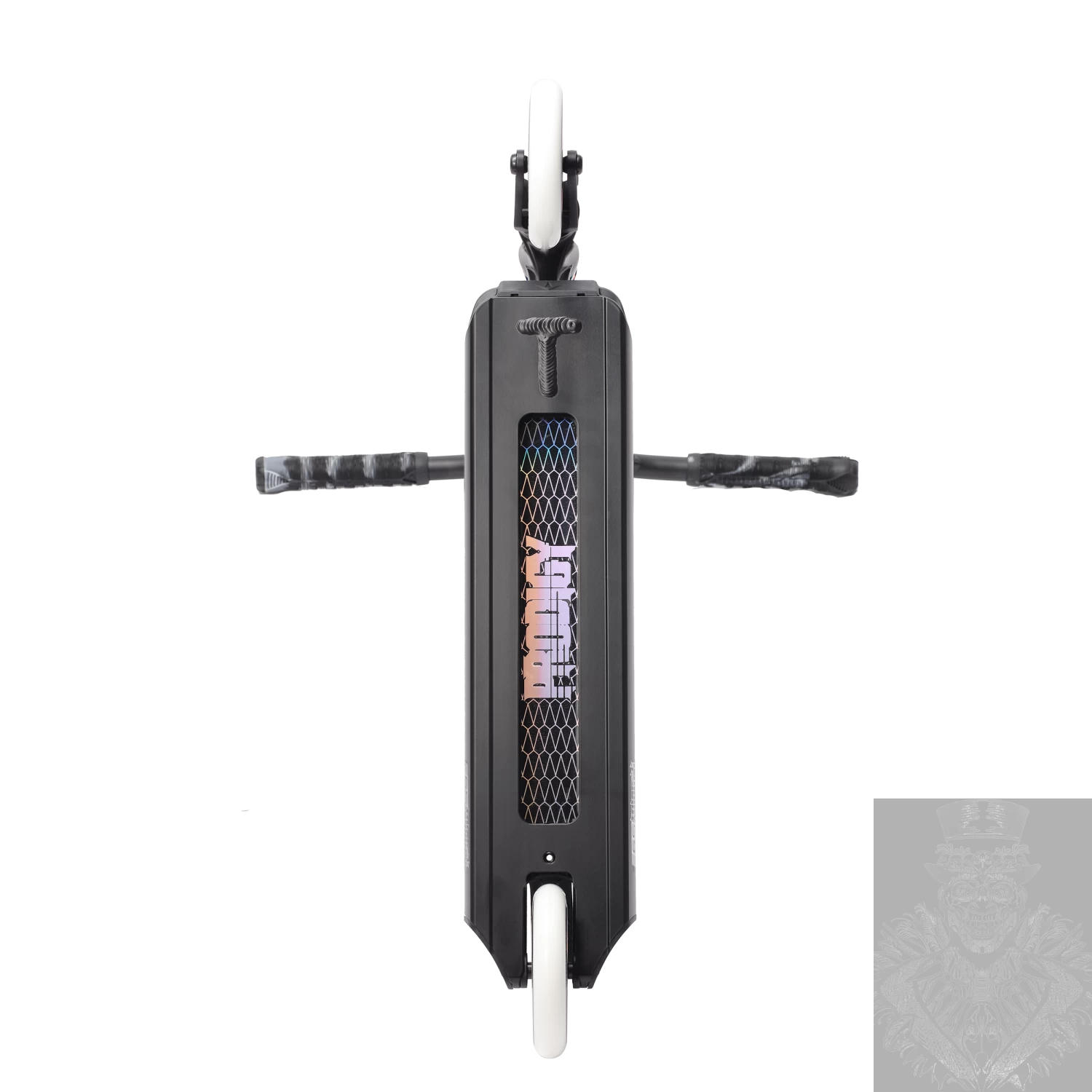 | DECK | PRODIGY DECK 495mm/19.5″ LONG- 120mm/4.75″ WIDE- 82.5° HEAD TUBE ANGLE. FRONT AND REAR NYLON INSERTS | CLAMP | 2 BOLT 6061 STANDARD ALU CLAMP- 6MM BOLTS |