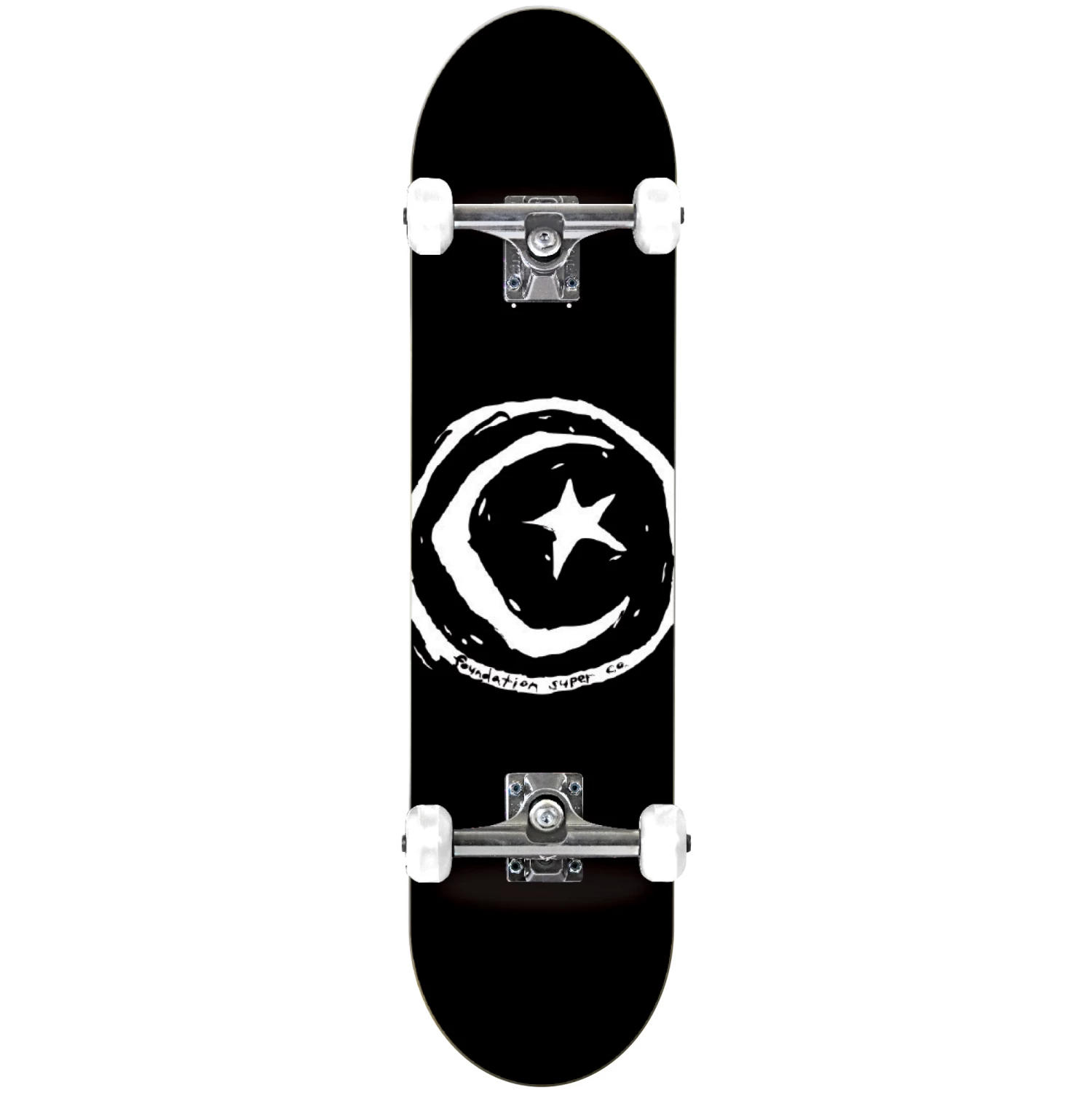 Foundation Star & Moon skateboard in black and white. 8″ wide deck. Ready to roll and with a big saving of £40. RRP £99.99 now only £60, best price in the UK.